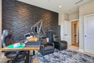 From the moment you enter, you'll be drawn into the home’s expansive open-concept layout, anchored by a striking waterfall kitchen island that doubles as both a design centerpiece and a functional gathering space. The kitchen features quartz countertops, custom designer cabinetry, a sleek tile backsplash, and over $70,000 in premium upgrades throughout—including luxury flooring that flows seamlessly through the main living areas. The light-filled interior is perfect for entertaining guests or enjoying a quiet evening at home with family.