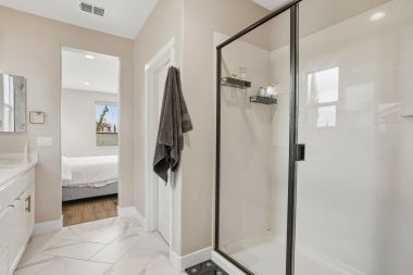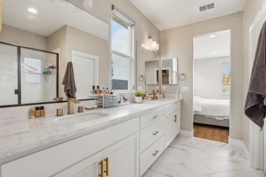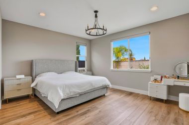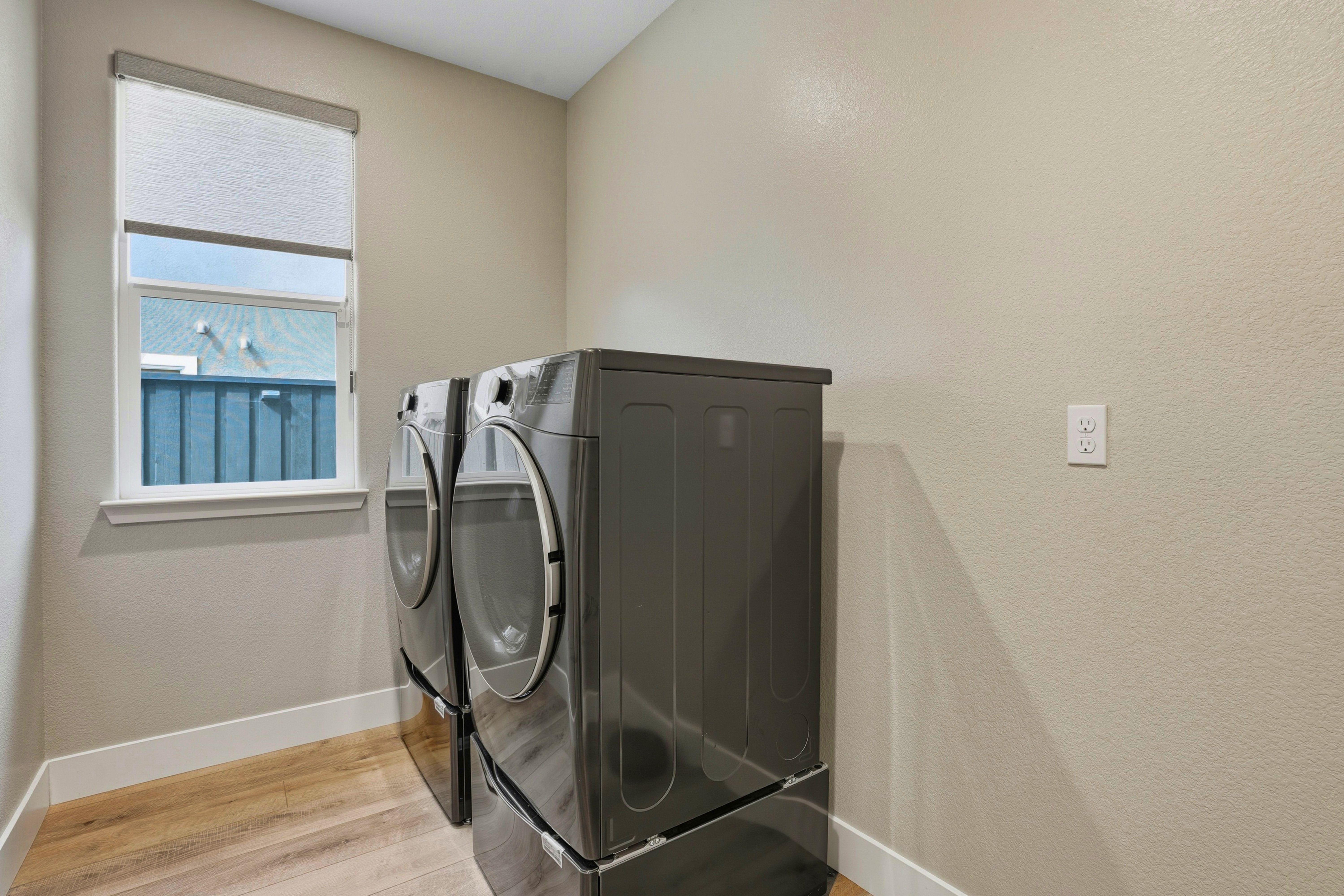 Upstairs, generously sized bedrooms and well-appointed bathrooms offer both comfort and style, with shaker-style cabinetry and modern finishes continuing the upscale aesthetic. Energy efficiency is also built into this home with owned solar, giving buyers the benefit of lower utility costs and long-term sustainability.
