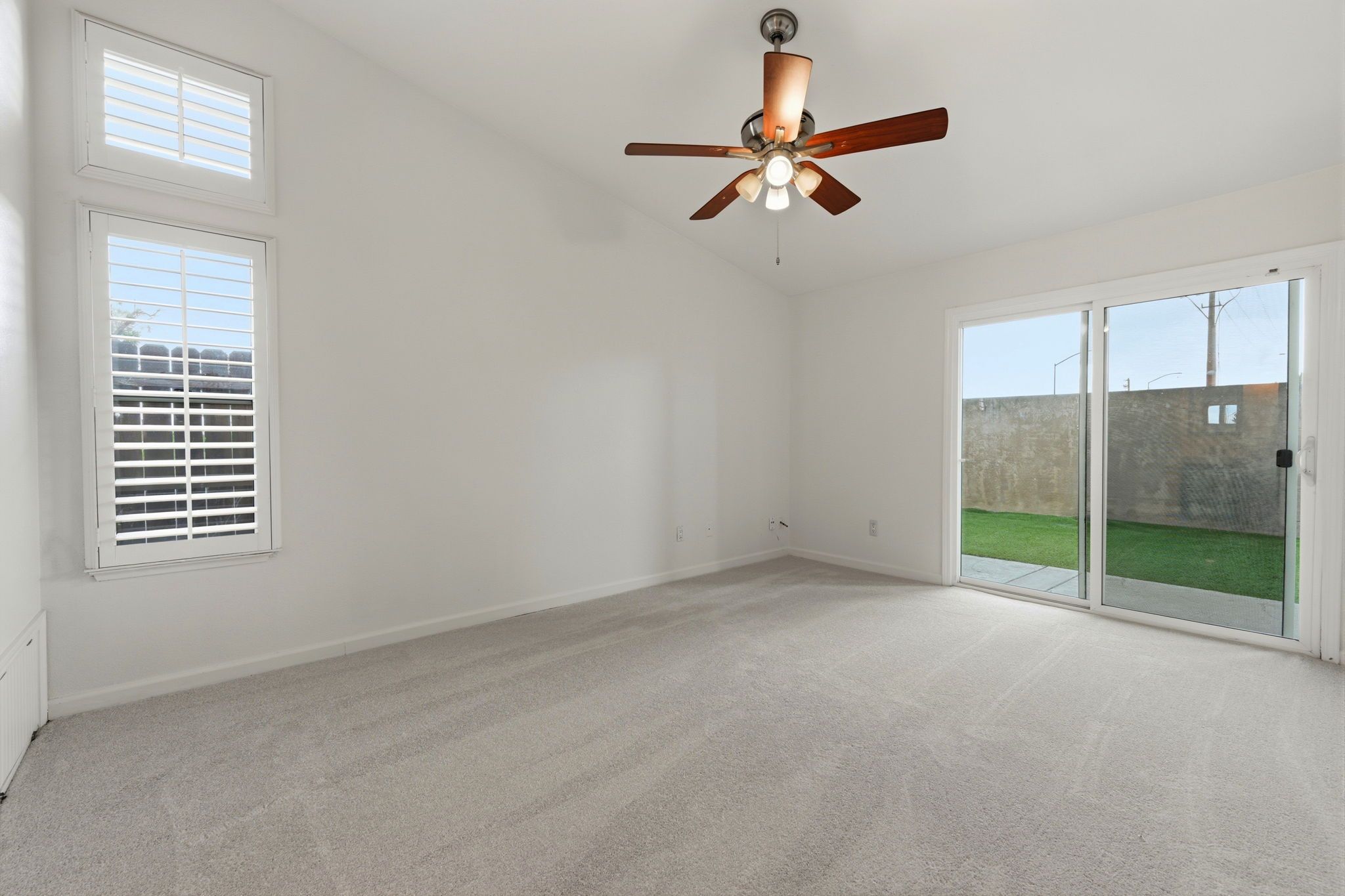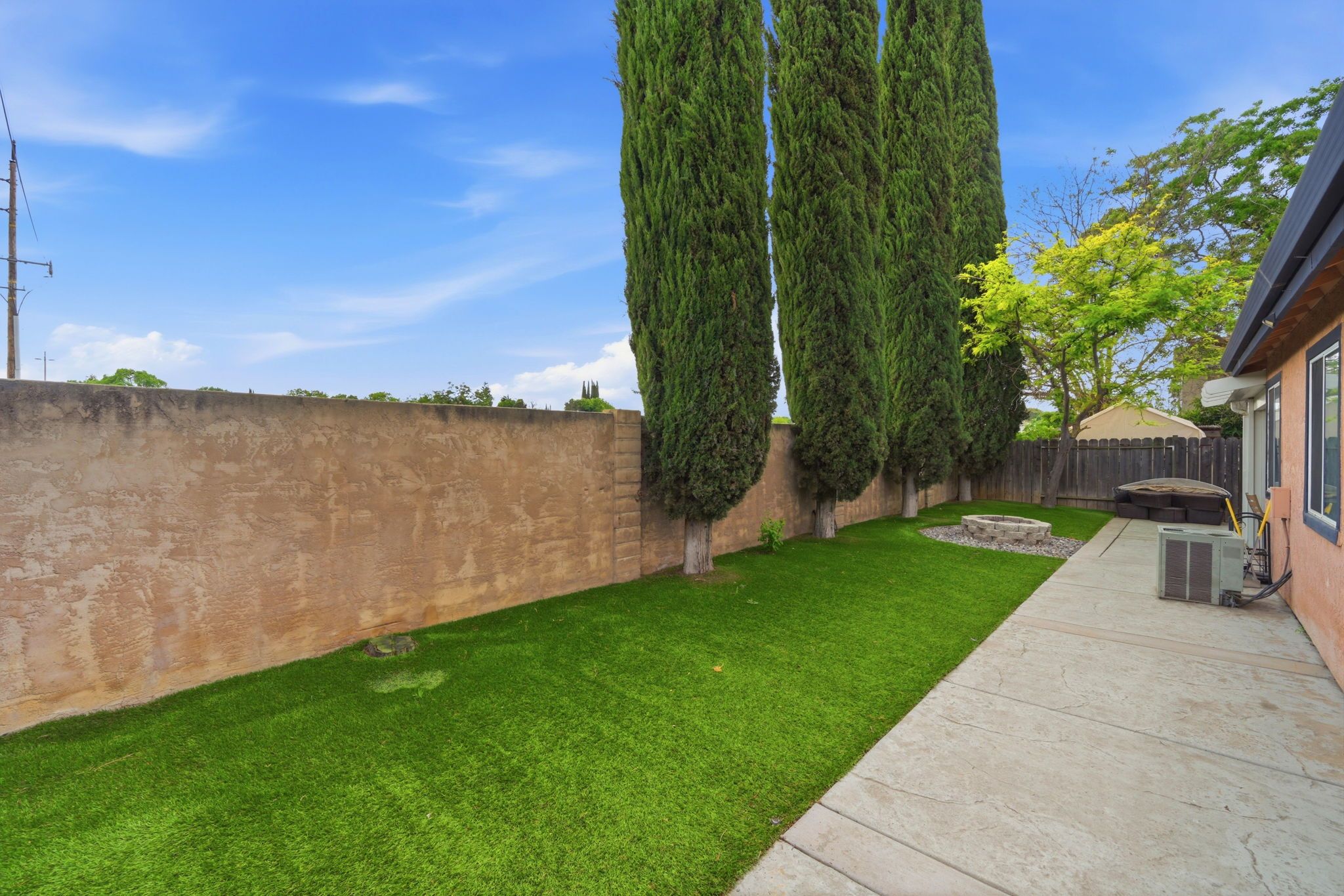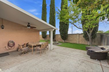 Step outside to a backyard built for enjoyment. The covered patio with ceiling fan, stamped concrete, and built-in fire pit creates a perfect outdoor retreat—ideal for entertaining, relaxing evenings, or weekend gatherings. The low-maintenance yard allows you to enjoy the space without the hassle.