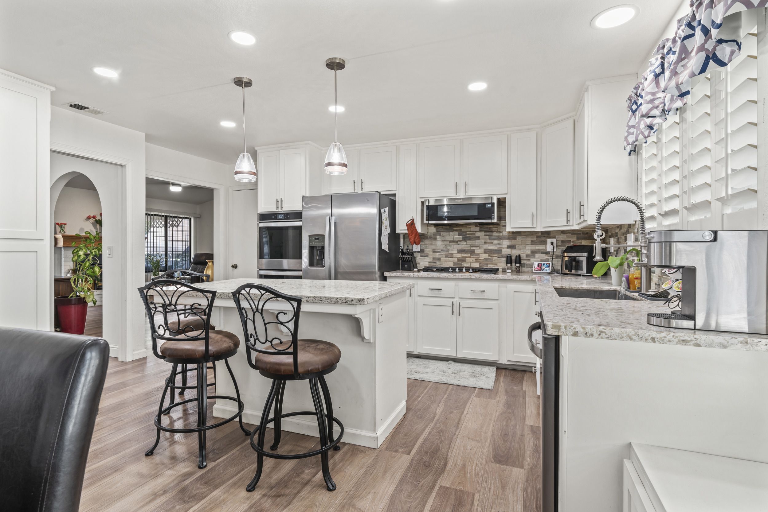 This spacious residence offers 1,957 sq. ft. of living space on an almost quarter-acre lot, blending modern style with everyday comfort. Step inside to discover an inviting open floor plan highlighted by elegant water-resistant flooring, abundant natural light, and a seamless flow between the living, dining, and kitchen areas. The updated kitchen features timeless shaker-style cabinetry, quartz countertops, and a large island - perfect for both cooking and entertaining.
