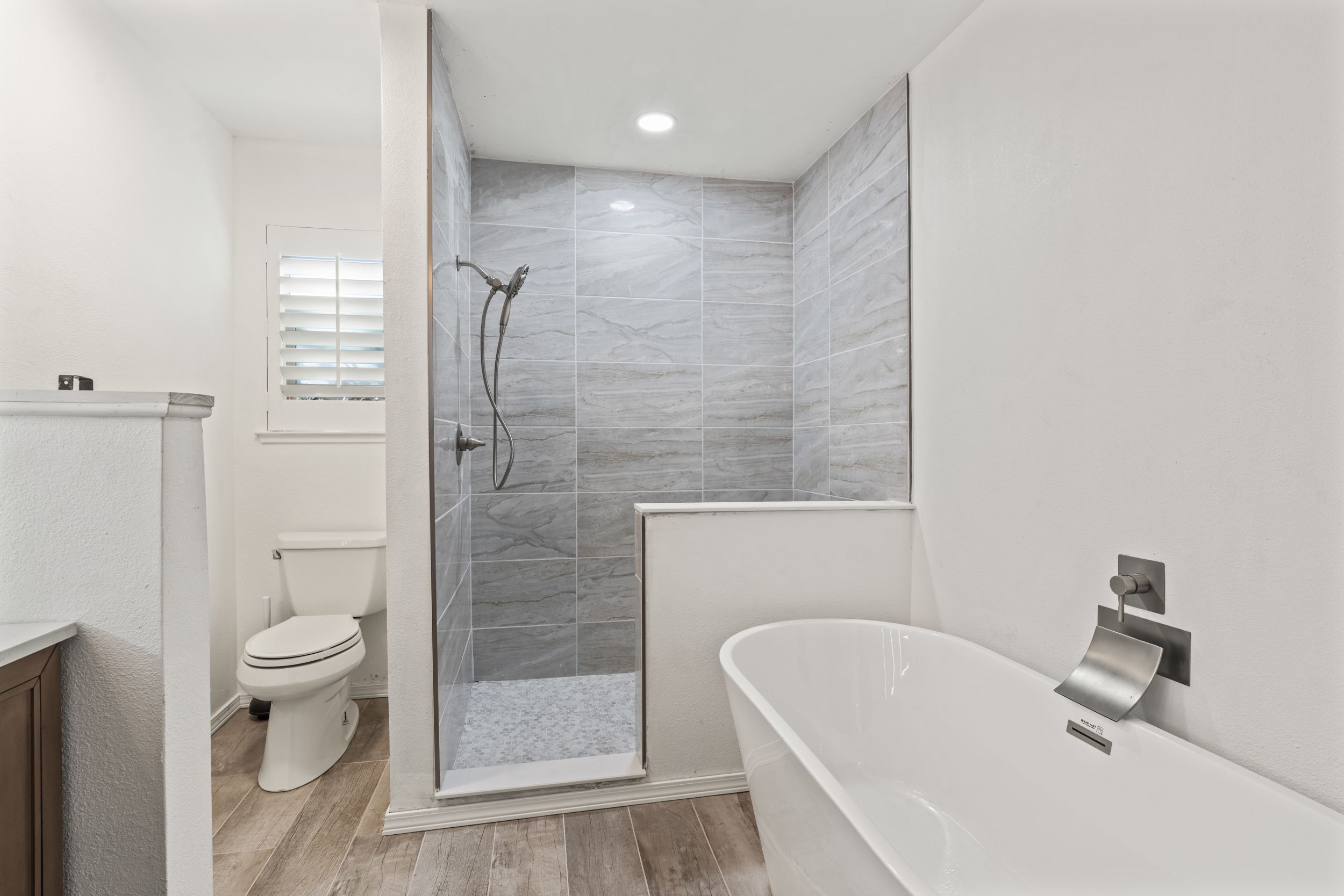 This home includes three generously sized bedrooms and two and a half fully remodeled bathrooms, offering both comfort and style. The primary suite is a true retreat, boasting his and hers closets, a spa-like en-suite bathroom with dual vanities, updated fixtures, and a deep soaking tub for unwinding at the end of the day. The secondary bedrooms are bright and spacious, with easy access to beautifully refreshed hall baths.