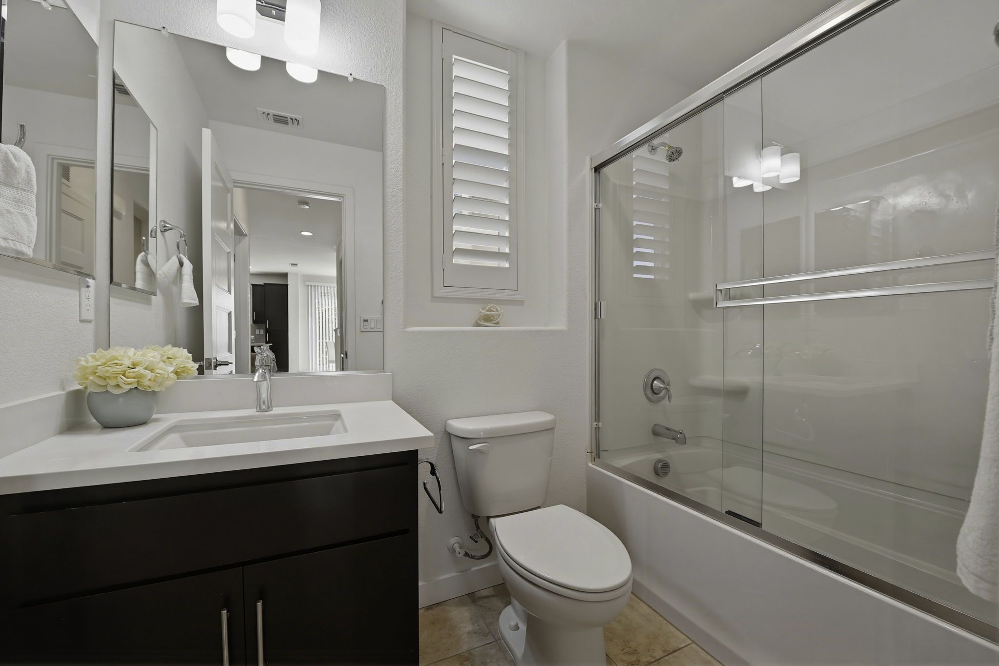 Additional highlights include a spacious two-car attached garage, plantation shutters, and modern finishes throughout, all contributing to a move-in ready experience.